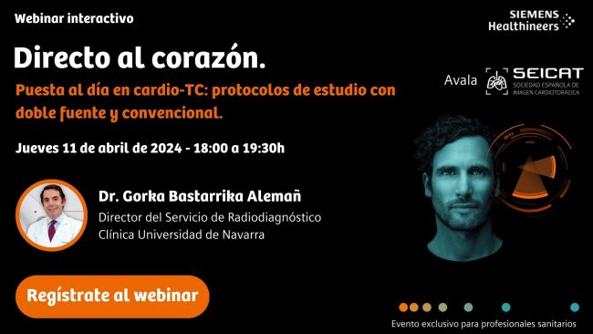 El pasado jueves 11 de abril a las 18:00h CET se celebró el webinar interactivo “Directo al corazón.” El Dr. Gorka Bastarrika, Director de Radiodiagnóstico de la Clínica Universidad de Navarra de Madrid y de Pamplon. Nos podrá al día en los protocolos de estudio en cardio TC con TC de doble fuente y TC…